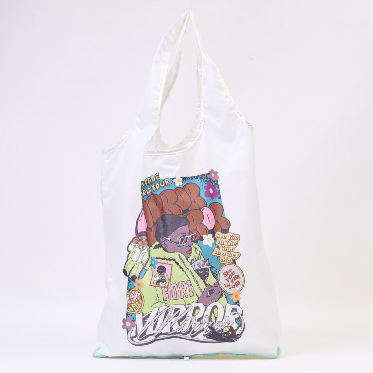 ちょっとした買い物にも便利のサイズ感の、 機能性とファッション性を併せたエコバッグ。 お弁当などの平たいものも入れやすい形状です。 全面印刷対応なのでベースカラーからご希望カラーにて製作可能。 多色、グラデーション、写真などのカラーデザインも表現可能です。 -